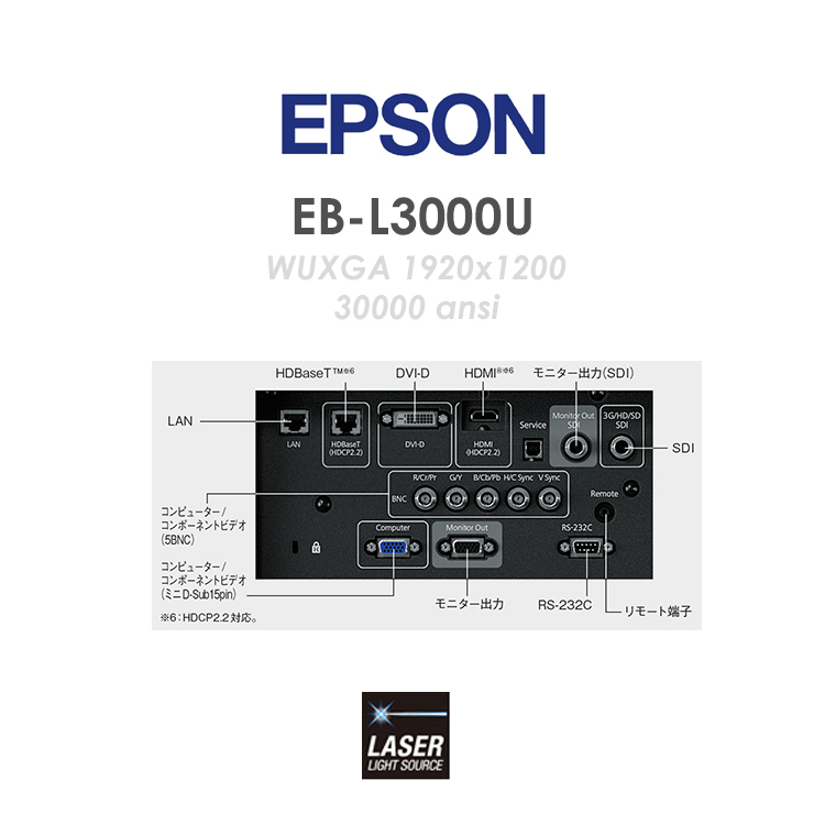 - Laser Light Source- LCD technology- WUXGA 1920x1200 resolution- Support 2560x1600- 30000 ansi brightness- Inputs ( HDMI / DVI-D / SDI / HDBaseT / VGA / 5BNC)- 8 optional lenses - Around 63.8 kg weight- 3 years factory warranty